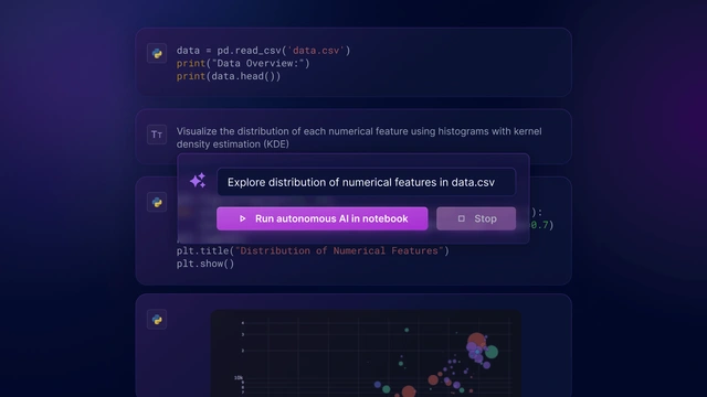 We are currently fine-tuning our autonomous AI to ensure it becomes a reliable companion while working in Deepnote notebooks. We are excited to roll out these capabilities soon, with our Team and Enterprise customers given priority access.